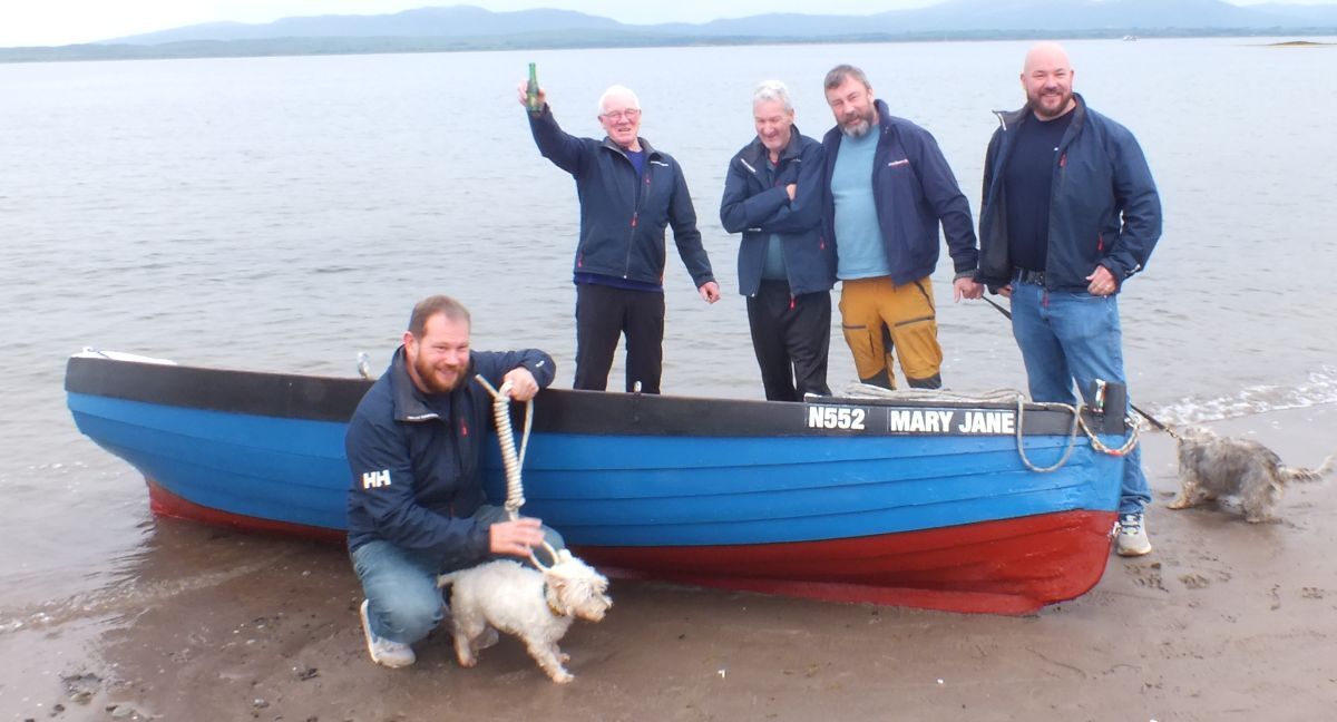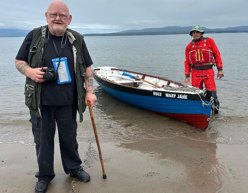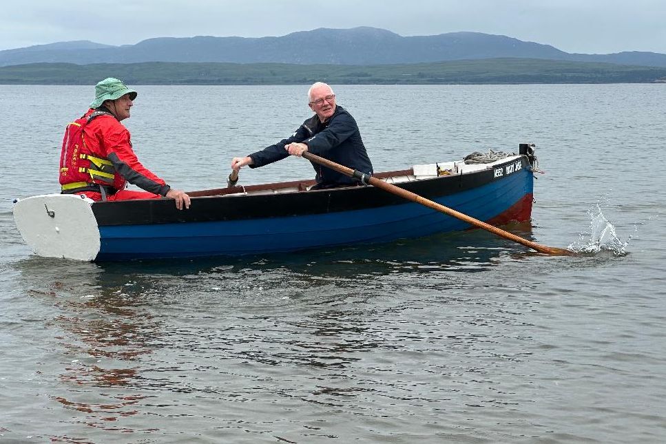 The Men’s Shed has temporarily used a member’s own shed as a workspace to restore a 90-year-old boat made on Easdale by the MacQueens. Last week Mr McAllister and his fellow boat restorer Colin Turtle took the 15ft long MaryJane to officially launch her off Ganavan. Direct descendants of MacQueen boatbuilders, Graham MacQueen and his family went along to join in the ceremony that was watched by a crowd of about 25 people.