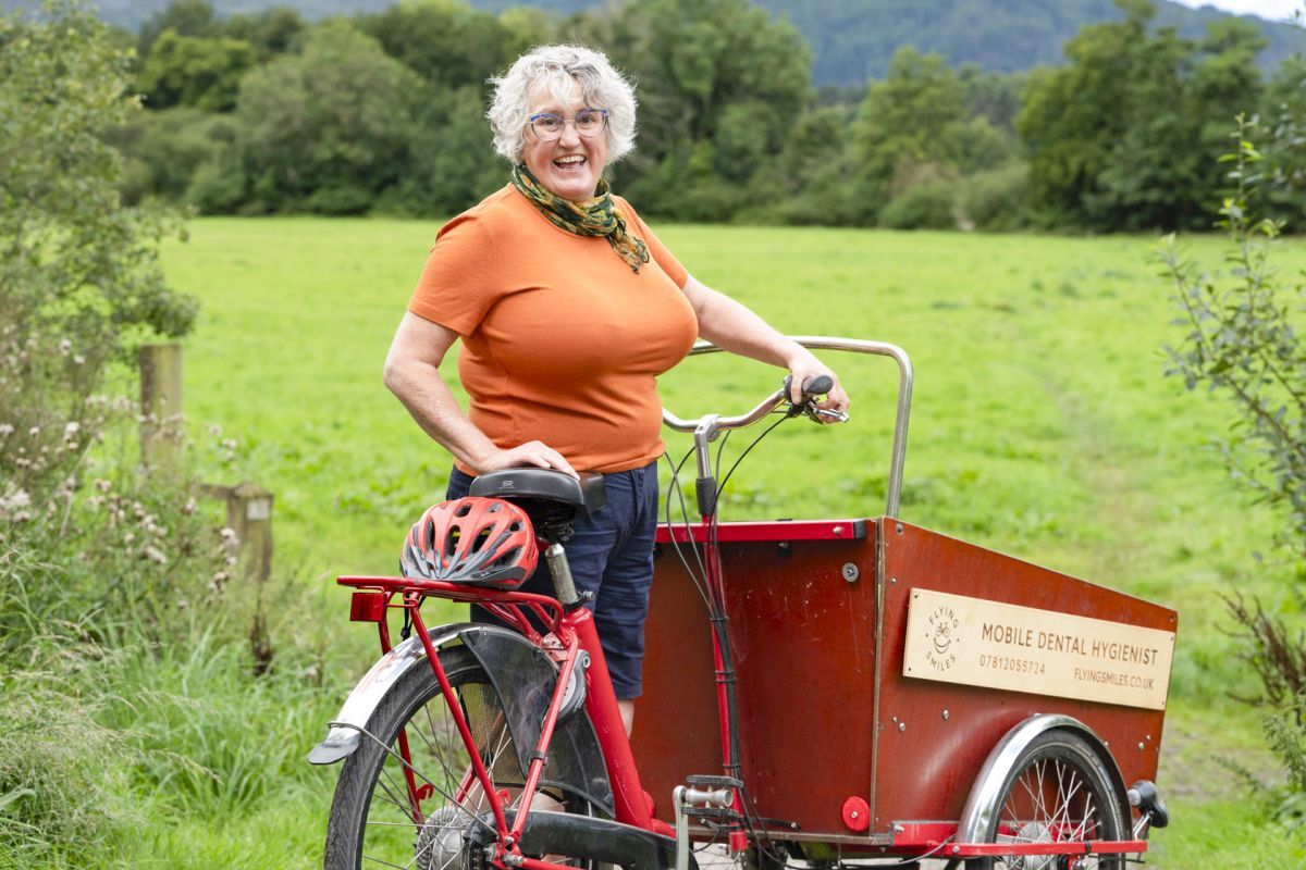 Fiona started out with just a cargo bike. Packed with all her equipment, she would cycle to the homes of patients in the village of Comrie near where she lives but with news of her service spreading wide, her services were soon in demand further afield, including the islands of the Uists, where she now travels regularly to serve surgeries that don’t have a hygienist.