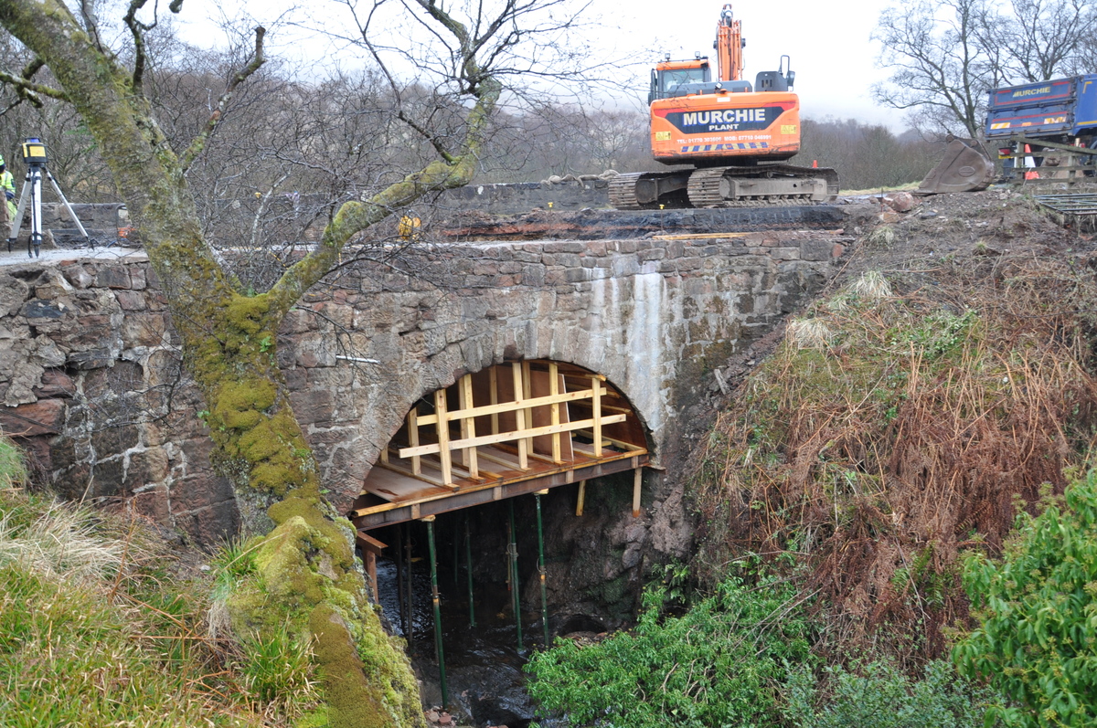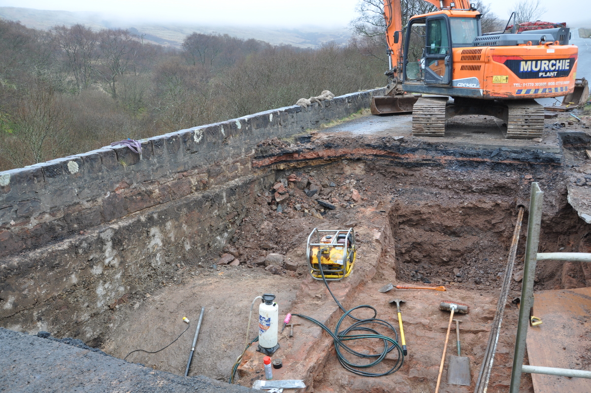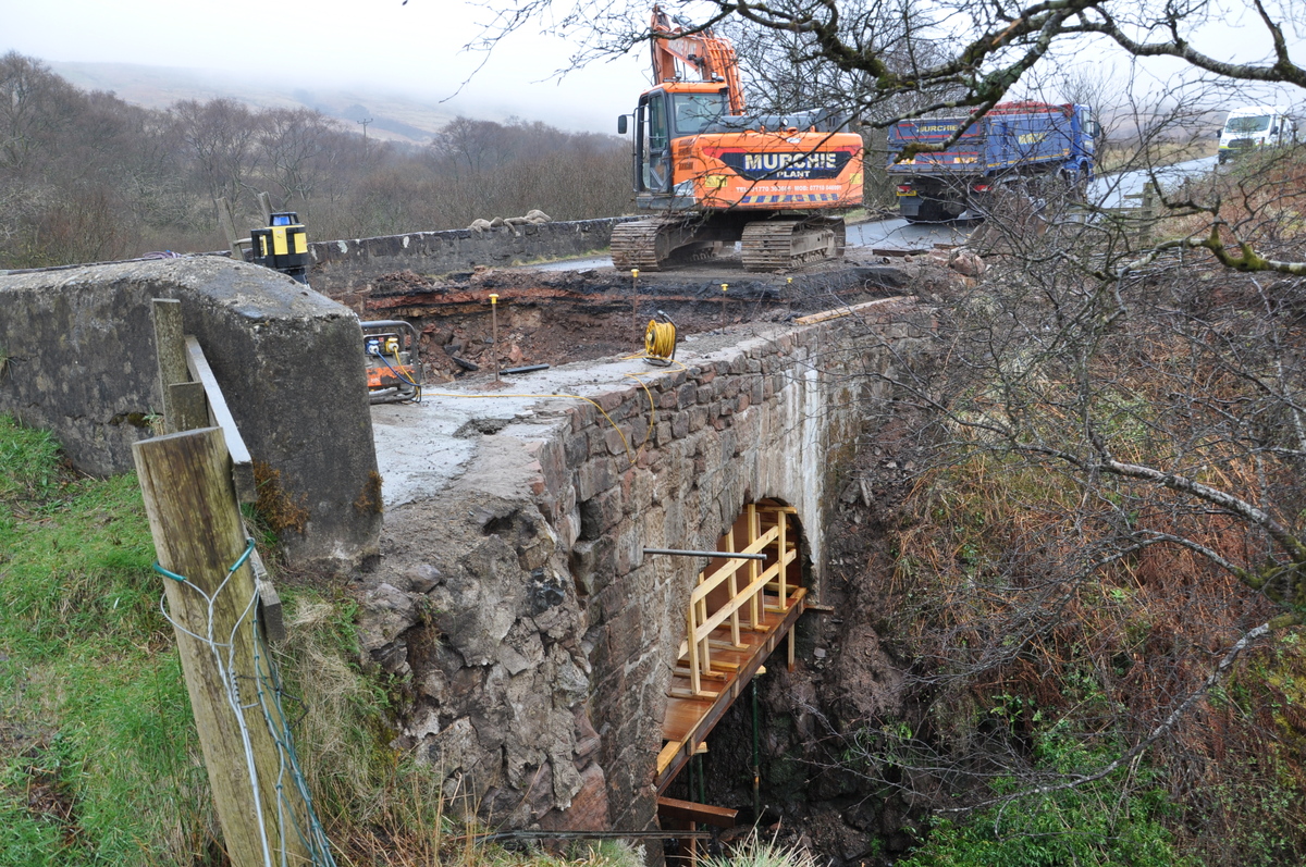 Originally a single track bridge, but widened to accommodate two vehicles some time in the last century, the weight of traffic and the passage of time had taken their toll on the structure, resulting in the bridge developing faults on the older, downhill side.