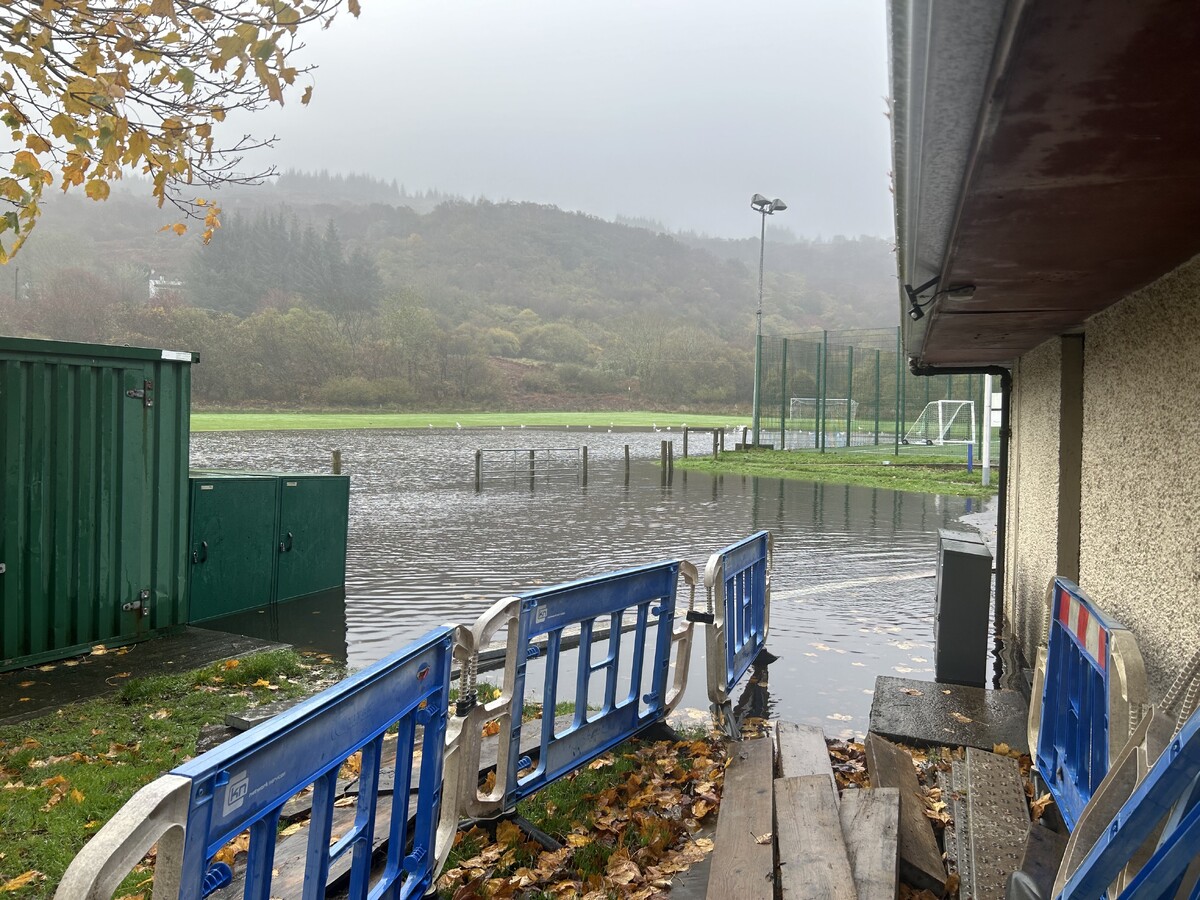 On Sunday, prior to the 2013 team playing their home game to Campbeltown at Lochgilphead Joint campus Astro, the team coach and secretary had to wade through the water to access the team’s first aid kit and balls.
