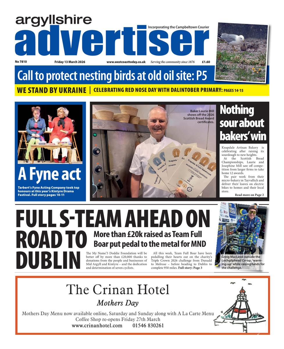 Why don't you subscribe right now and get access to all content on West Coast Today. Not only that, you can read the e-editions of The Oban Times, The Arran Banner, The Argyllshire Advertiser, The Campbeltown Courier and The Lochaber Times. You'll be supporting local jobs and independent journalism.