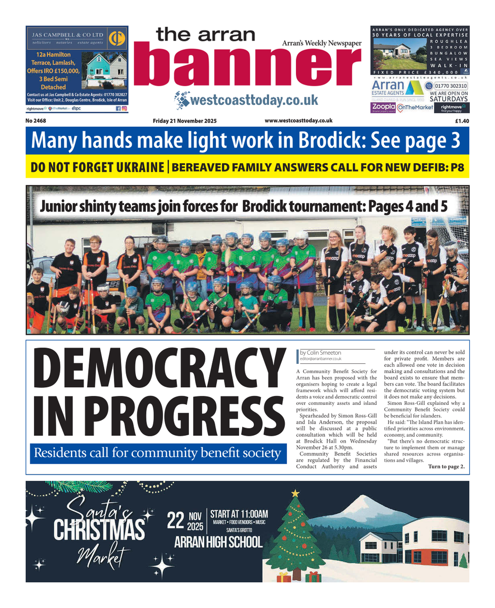 Why don't you subscribe right now and get access to all content on West Coast Today. Not only that, you can read the e-editions of The Oban Times, The Arran Banner, The Argyllshire Advertiser, The Campbeltown Courier and The Lochaber Times. You'll be supporting local jobs and independent journalism.