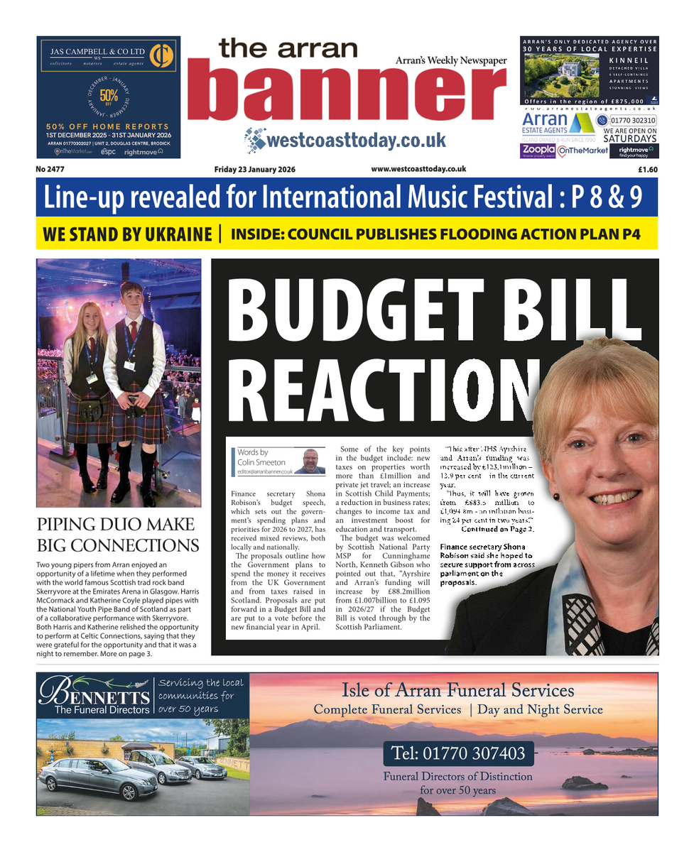Why don't you subscribe right now and get access to all content on West Coast Today. Not only that, you can read the e-editions of The Oban Times, The Arran Banner, The Argyllshire Advertiser, The Campbeltown Courier and The Lochaber Times. You'll be supporting local jobs and independent journalism.