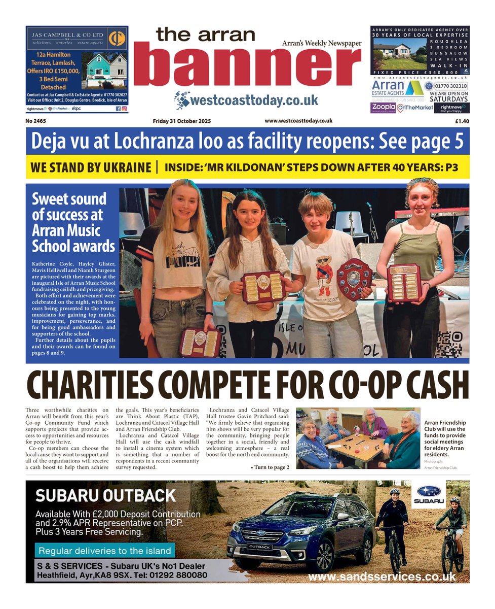 Why don't you subscribe right now and get access to all content on West Coast Today. Not only that, you can read the e-editions of The Oban Times, The Arran Banner, The Argyllshire Advertiser, The Campbeltown Courier and The Lochaber Times. You'll be supporting local jobs and independent journalism.