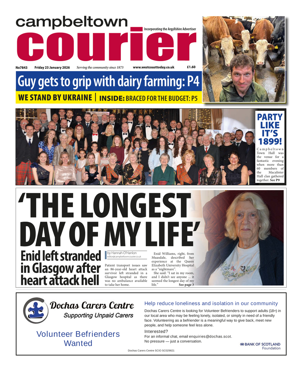 Why don't you subscribe right now and get access to all content on West Coast Today. Not only that, you can read the e-editions of The Oban Times, The Arran Banner, The Argyllshire Advertiser, The Campbeltown Courier and The Lochaber Times. You'll be supporting local jobs and independent journalism.