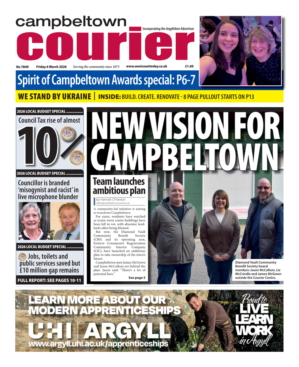 Why don't you subscribe right now and get access to all content on West Coast Today. Not only that, you can read the e-editions of The Oban Times, The Arran Banner, The Argyllshire Advertiser, The Campbeltown Courier and The Lochaber Times. You'll be supporting local jobs and independent journalism.