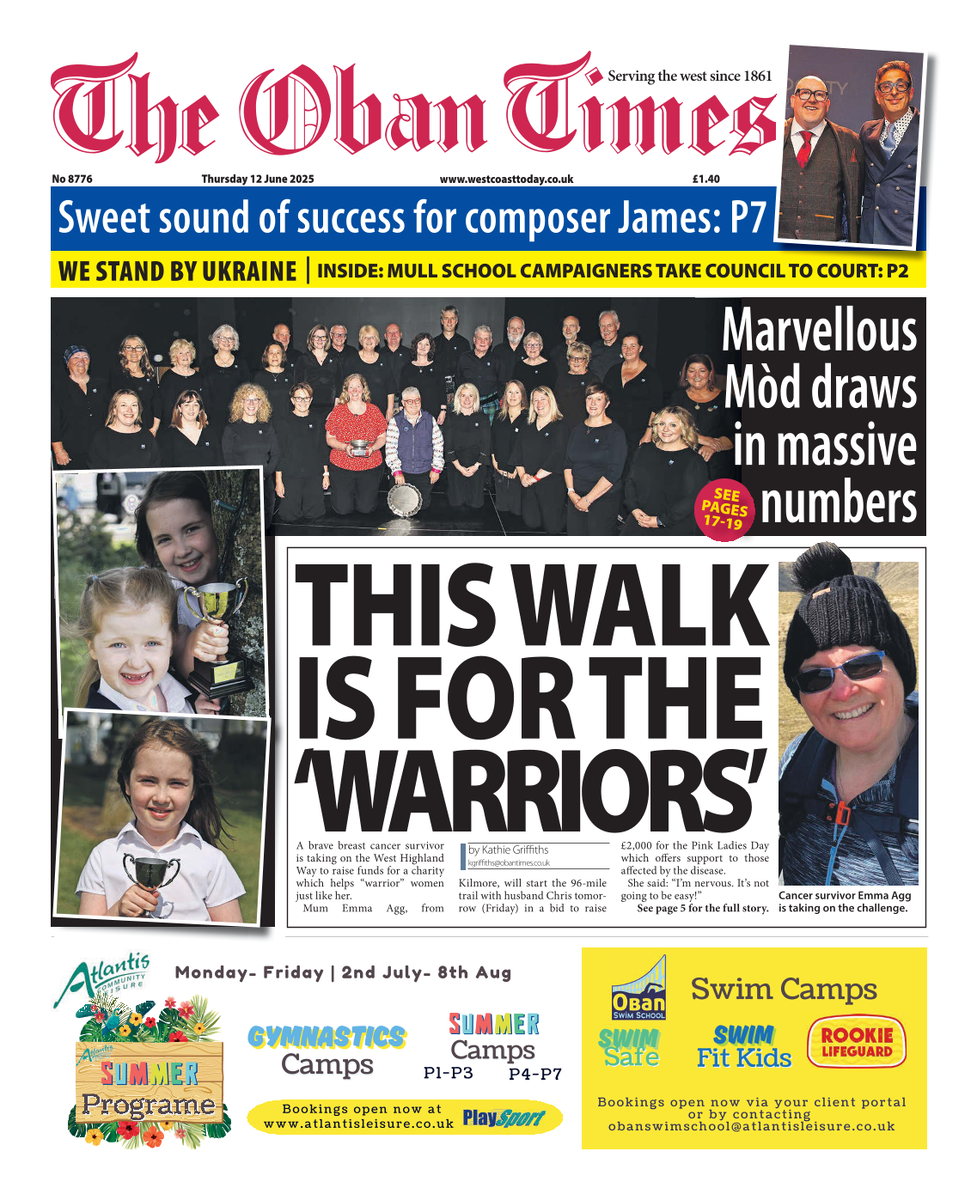 Why don't you subscribe right now and get access to all content on West Coast Today. Not only that, you can read the e-editions of The Oban Times, The Arran Banner, The Argyllshire Advertiser, The Campbeltown Courier and The Lochaber Times. You'll be supporting local jobs and independent journalism.