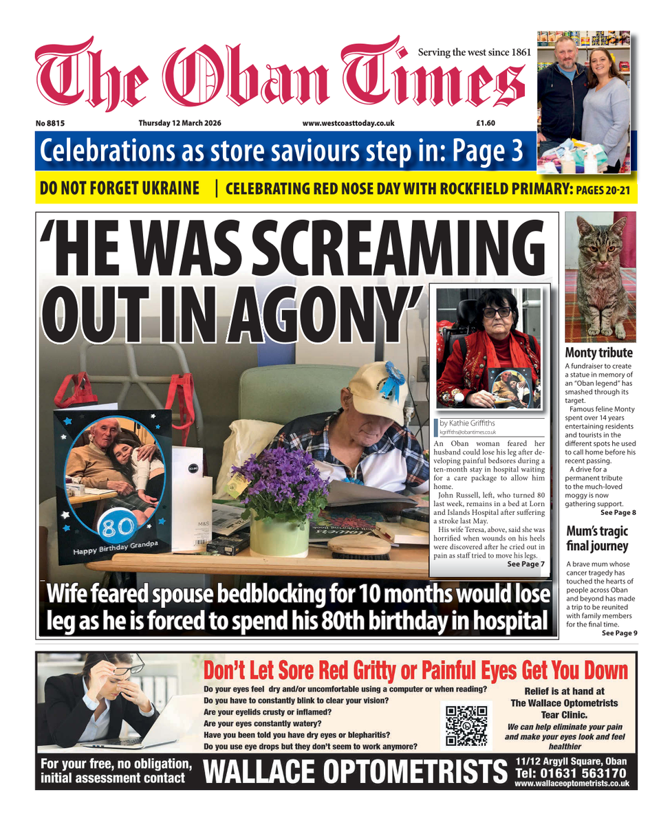 Why don't you subscribe right now and get access to all content on West Coast Today. Not only that, you can read the e-editions of The Oban Times, The Arran Banner, The Argyllshire Advertiser, The Campbeltown Courier and The Lochaber Times. You'll be supporting local jobs and independent journalism.