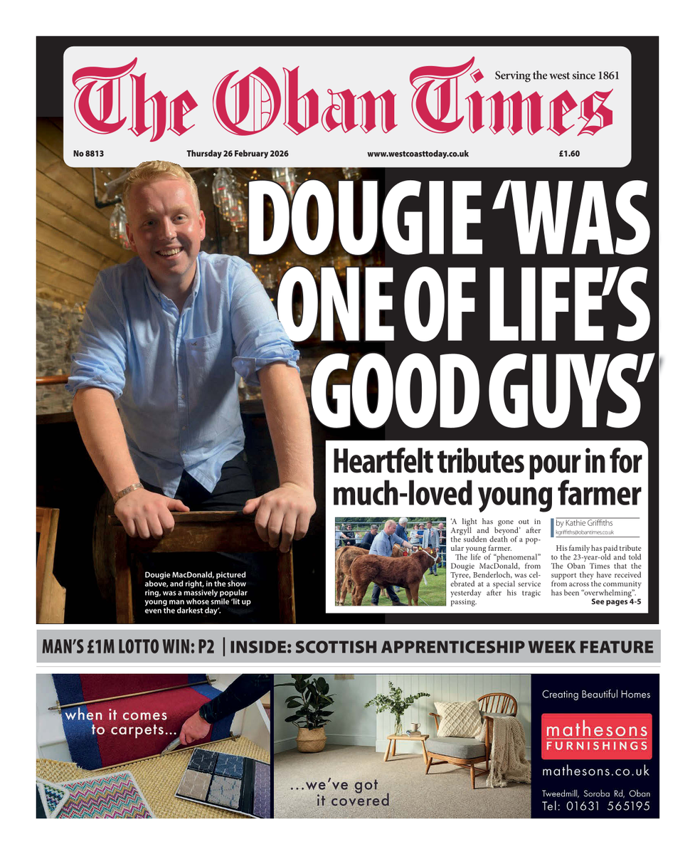 Why don't you subscribe right now and get access to all content on West Coast Today. Not only that, you can read the e-editions of The Oban Times, The Arran Banner, The Argyllshire Advertiser, The Campbeltown Courier and The Lochaber Times. You'll be supporting local jobs and independent journalism.