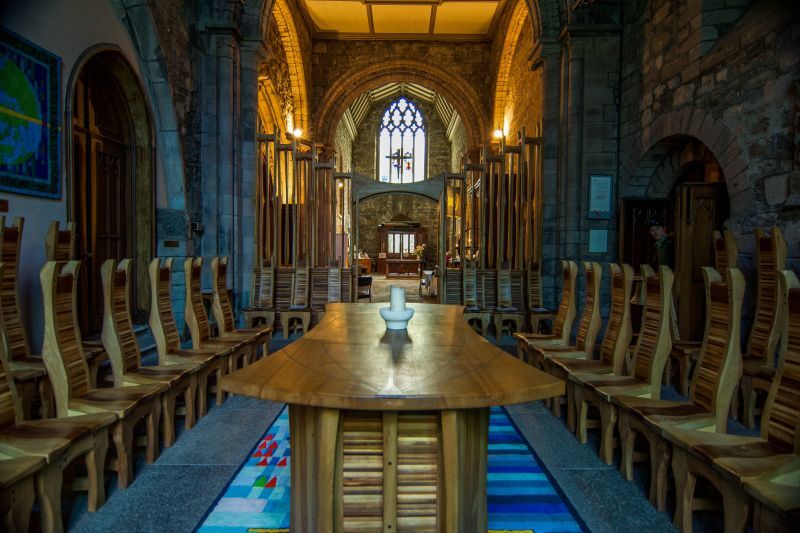 The innovative furniture designer/wood sculptor Tim Stead created some of Scotland’s most popular public art, including the interior of Café Gandolfi in Glasgow, the Millennium Clock at the National Museum of Scotland in Edinburgh, and the memorial chapel for the Piper Alpha oil disaster in Aberdeen. One of his greatest creations was the interior of his family home “The Steading” in the Borders which he sculpted from wood and has been Grade-A listed by Historic Environment Scotland.