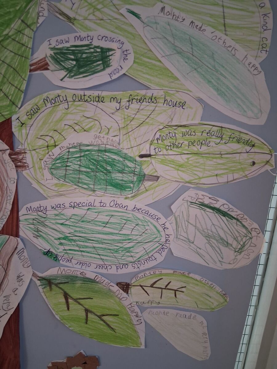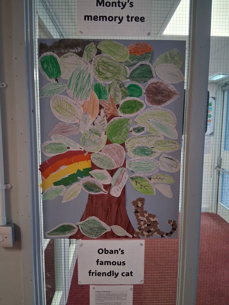 The pupils’ teacher, Miss Gage, said: “The passing of Monty, our lovable and adventurous Oban cat, allowed the children to reflect on their feelings while also learning valuable coping skills for difficult situations such as times of change or loss.”