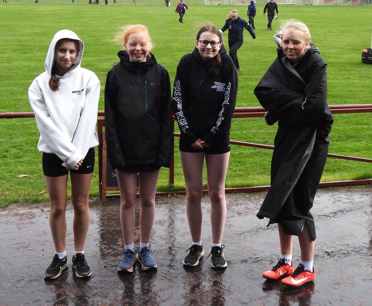 The under 16 girls competed in the unusual 4 x 200m relay, taking 3rd place in windy and wet conditions.
