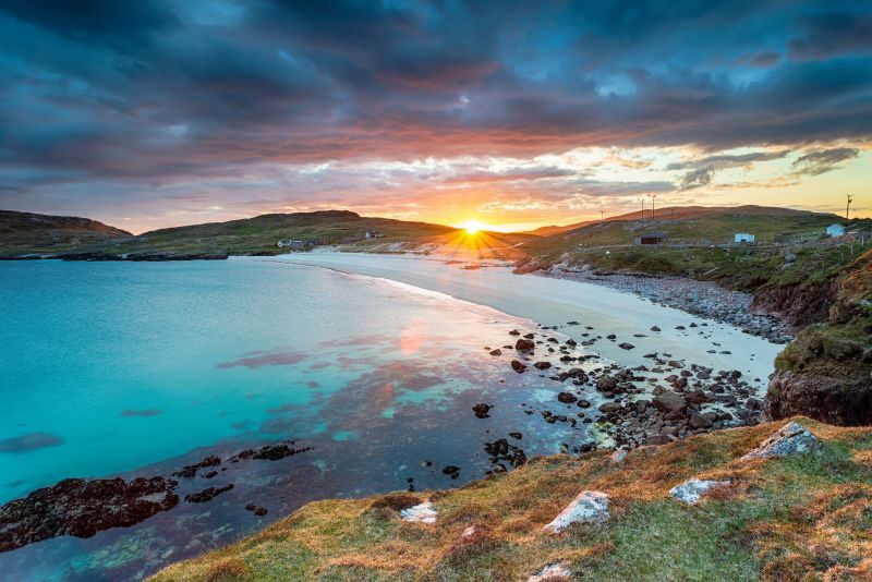 Back on Lewis and Harris, visitors are treated to some of the UK’s most beautiful beaches. Luskentyre, on South Harris, is a vast crescent of white sand and turquoise sea that could easily be mistaken for the Caribbean. Scarista is quieter, more sheltered, but no less stunning. On Lewis, Uig Beach — where the famous 12th-century Lewis Chessmen were discovered — is a magnet for wild campers and beachcombers alike.