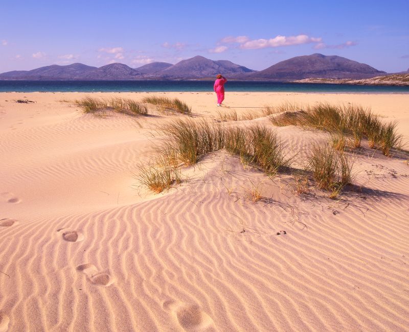 Lochmaddy (North Uist) and Lochboisdale (South Uist) are the islands’ principal ports, with whitewashed houses, local shops and sea-facing hotels. From Lochboisdale, gaze across to Canna and Rum, or spot Calvay Island, where a lighthouse and castle ruins once sheltered Bonnie Prince Charlie.