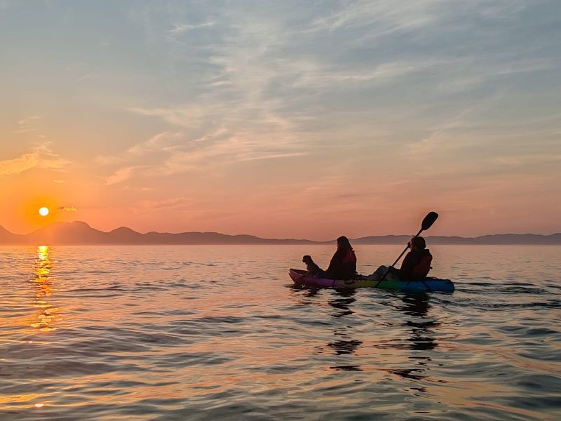 Port Ban is particularly known for its comfortable and cosy holiday caravans, thoughtfully spaced to provide privacy and tranquillity. Each caravan features a veranda with views over the sea and breathtaking sunsets, offering the perfect place to relax, dine outdoors or simply watch the light change across the water. The park’s easy-going atmosphere allows parents to slow down and recharge, while children enjoy the freedom of open space. Dogs are welcome, making Port Ban an ideal choice for couples, families and walkers travelling with four-legged companions.